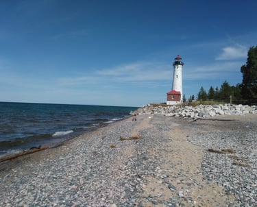 exploring beautiful waterfalls of Northern Michigan and hiking to remote Great Lakes’ lighthouses.